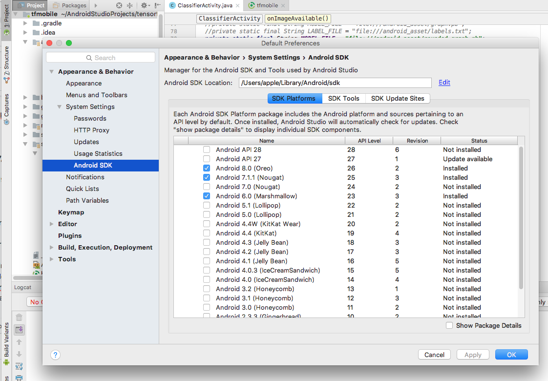Follow the setup wizard in Android Studio and install any SDK packages that it recommends.
