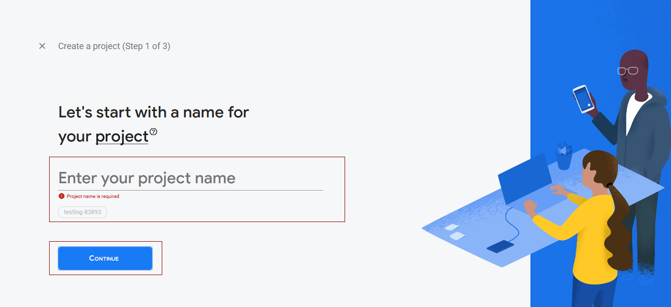 Click "CREATE NEW PROJECT" and write your project name.