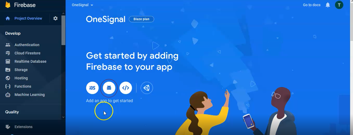 Open the Firebase console.