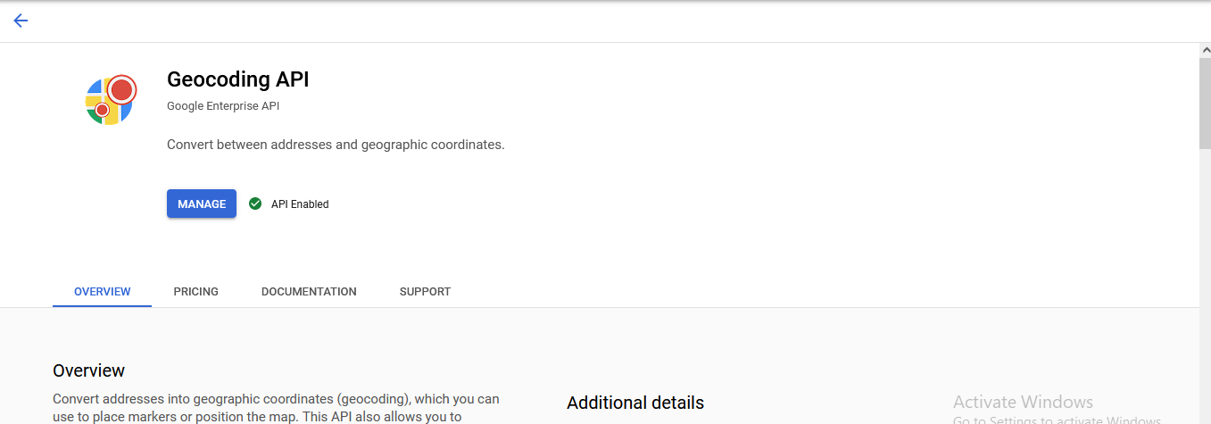 Click Geocoding API then Click on Enable button then it would activate the Places Api .