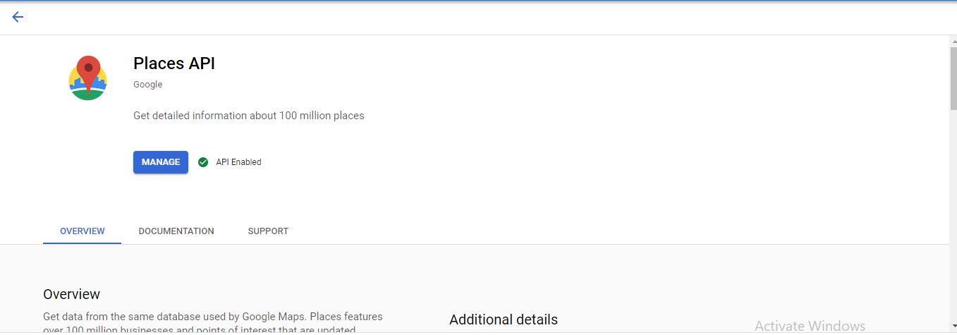 Click Places Api then Click on Enable button then it would activate the Places Api .